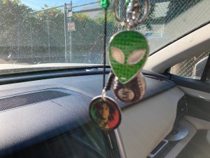 - Hanging from the rear view